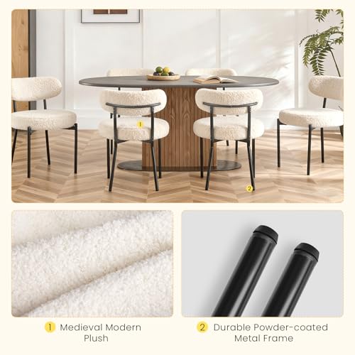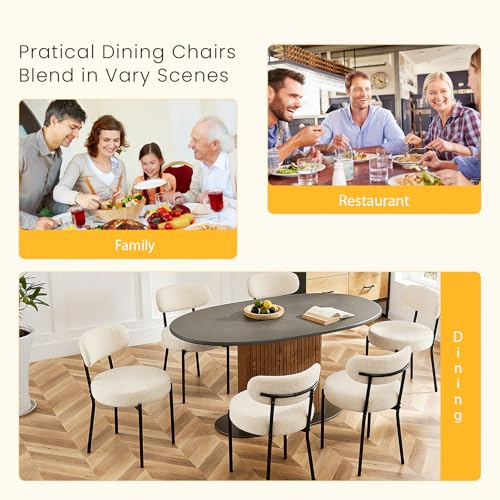 Specification: DUMOS Dining Chairs Set of 4, Mid Century Modern Chair Round Upholstered Curved Backrest, Kitchen Vanity Living Room Chairs with Black Metal Legs,Light Beige
