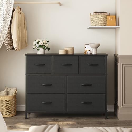 Specification: OLIXIS Dresser for Bedroom with 7 Fabric Drawers Storage Organizer Closet Chest Clothes Cabinet Vertical Dresser for Living Room Entryway Hallway,Black
