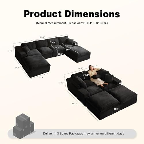 Specification: Afuson 137.8” Sectional Couches for Living Room, Set of Cloud Couch, Modular Sectional Sofa, Convertible Sofas Bed, Deep Seat Sofa, U Shaped Cozy Sofa Furniture Set, Corduroy, Black