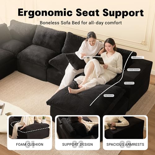 Afuson 137.8” Sectional Couches for Living Room, Set of Cloud Couch, Modular Sectional Sofa, Convertible Sofas Bed, Deep Seat Sofa, U Shaped Cozy Sofa Furniture Set, Corduroy, Black