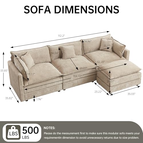 Specification: Modular Sectional Sofa, 112.2 Inch L Shaped Couch Set with Armrests, 3-Seater Comfy Cloud Couches for Living Room Apartment, Coffee