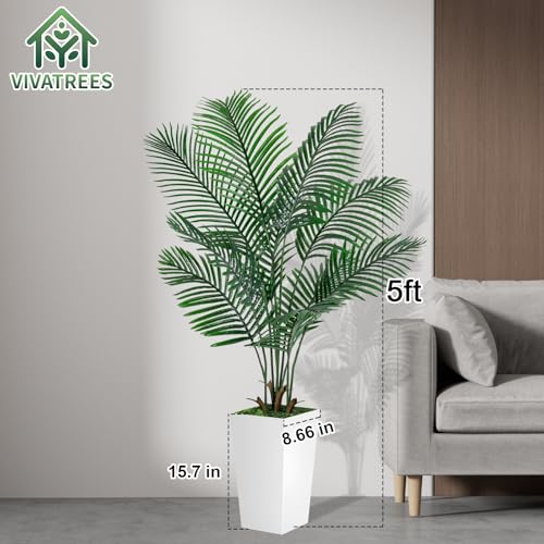 VIVATREES Palm Tree 5FT Artificial, 60in Tall Faux Palm Tree with 15.7 White Planter, Fake Potted Tree for Indoor & Outdoor Home Office Decor