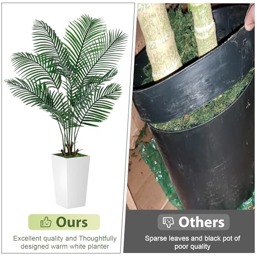 Planter Included✅ Our Palm tree comes with a 15.7 inch White Removable Square Planter ,save extra purchase of planter.The artificial Palm tree is pre-assembled in a sturdy plastic planter for easy placement and care.