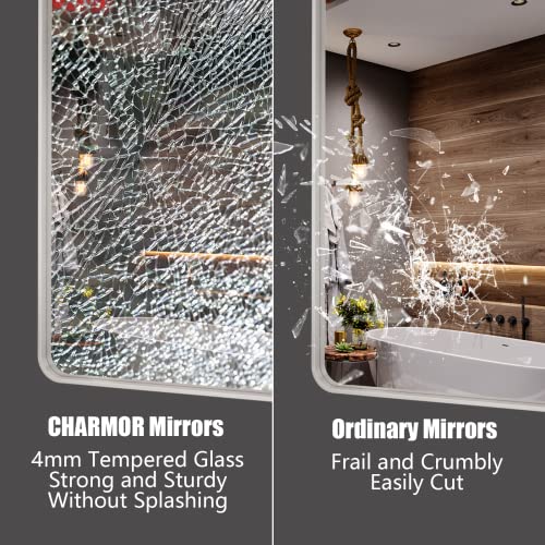 ✔【Durable Brushed Silver Frame Mirror】With round corner metal frame, CHARMOR silver bathroom mirror looks elegant and feels smooth. The frame material is premium alumium alloy, which is stylish and more durable. Light weight, good corrosion resistance and wear resistance. Easy to hang.