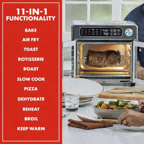 Specification: Emeril Lagasse Extra Large French Door Air Fryer Toaster Oven Combo, 24 Cooking Functions and Digital Controls, 7 Accessories Included, Stainless Steel Finish, 26QT Capacity