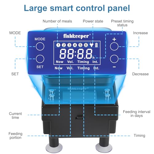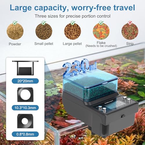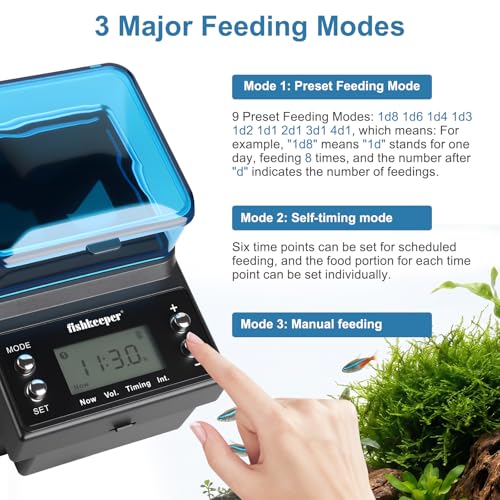Specification: fishkeeper Automatic Fish Feeder Rechargeable, 3 Feeding Modes USB Aquarium Auto Dispenser for Pellets Flakes Powder, with Lithium Battery LCD Screen for Vacation Betta Turtle – Memory Function