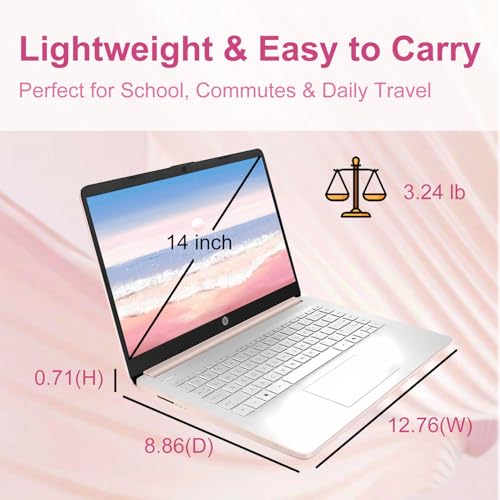 HP 14″Rose Gold Laptop, with Office 365 & Copilot AI, Intel Processor, 4GB RAM Memory, 64GB SSD, Lightweight Student Computer