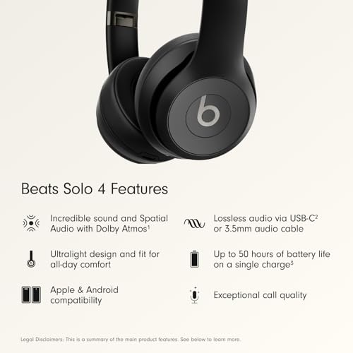 Specification: Beats Solo 4 – Wireless On-Ear Bluetooth Headphones, Up to 50-Hour Battery Life, Ultra-Lightweight Comfort, Powerful and Balanced Sound, Apple & Android Compatible – Matte Black