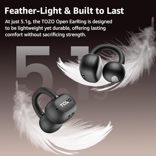 [SUPREMELY COMFORTABLE ULTRA-LIGHT] – Enjoy unparalleled comfort with TOZO OpenEarRing, expertly crafted for high-resilience materials and featuring a secure clip-on design, with a single earbud is only weigh 5.1g, allowing you to enjoy music with a lightweight and pressure-free experience.