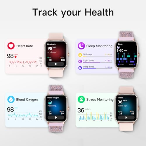 Smart Watch for Women, 1.85″ HD Smartwatch Compatible iPhone/Samsung/Android (Answer/Make Calls), 100+ Sport Modes Fitness Tracker with Heart Rate/Sleep/SpO2 Monitor, IP68 Waterproof, with 2 Bands